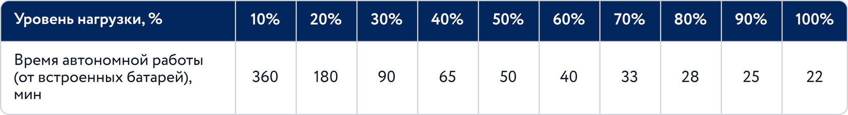 Время заряда встроенных АБ, ч: не более 8 (до 90% емкости)